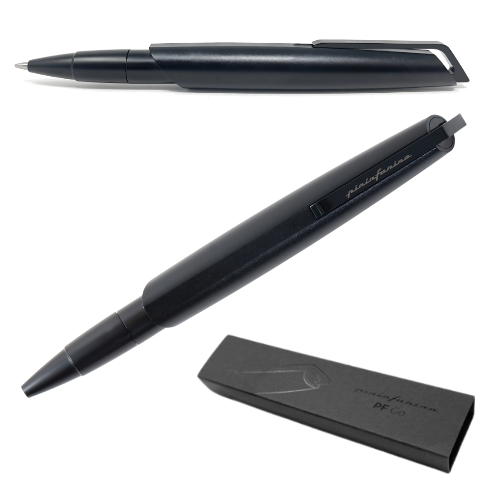 The Pininfarina PF GO Ballpoint Black Edition features a sleek minimalist design, premium materials, and a convenient twist mechanism with a retractable tip. Made from black aluminum, it combines comfort and functionality in a single writing instrument, expressing the full quality and excellence of Pininfarina design.