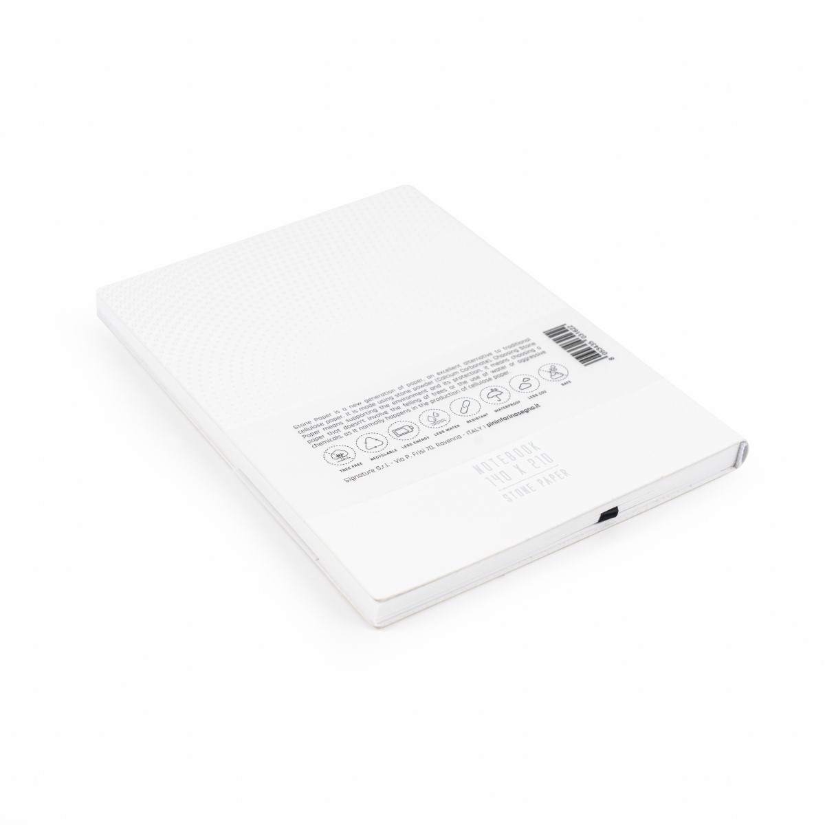 Carta Ecologica: 128 pagine realizzate in Stone Paper, prodotta senza abbattimento di alberi e senza l'utilizzo di acqua o prodotti chimici aggressivi.