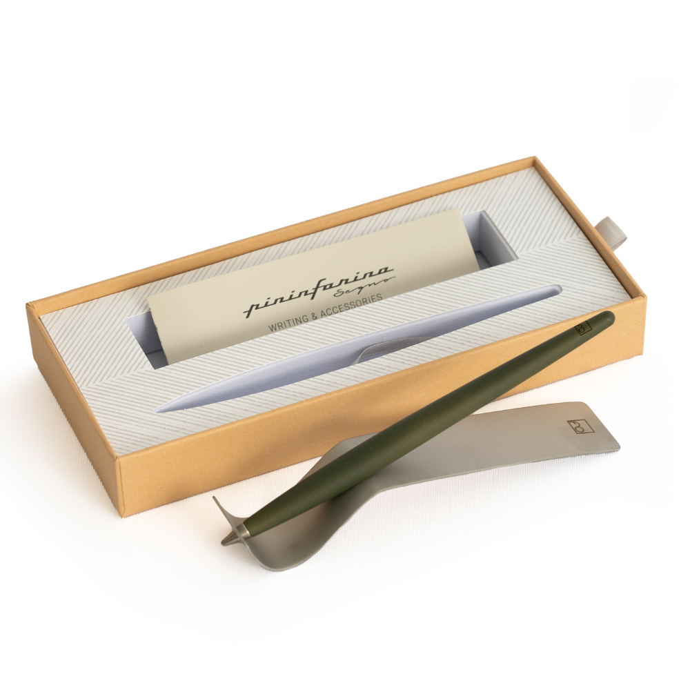 La penna è realizzata in legno di acero tinto, un legno pregiato che viene trattato per ottenere una tonalità elegante e uniforme, accoppiato a una base in acciaio che ne garantisce stabilità e durata. Il legno dona un’estetica calda e un tocco “artigianale”, mentre la base in acciaio richiama la precisione del design Pininfarina. 2. Che tipo di punta utilizza e cosa significa “Ethergraf® e-ink”?